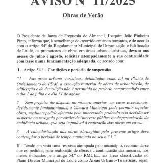 Aviso 11/2025 - Obras de verão