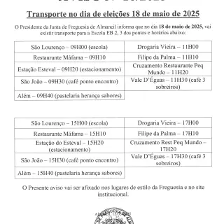 Aviso 10/2025 - Transporte no dia de eleições